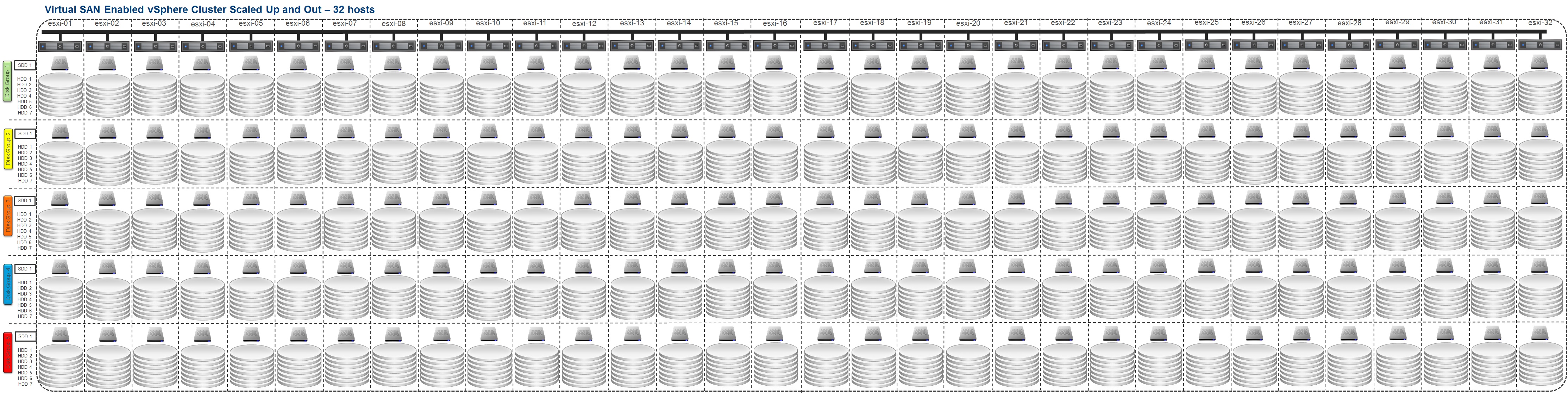 The big news is that VSAN will support a full 32 hosts vSphere cluster. So what does that look like fully scaled up and out?
