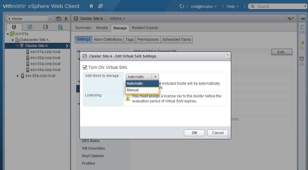 - Being built in also makes it simple and easy to manage. There is no VSAN install, it is simply enabled as a feature of the hypervisor by clicking a check box. When enabled, VSAN will collect all the local disks on all the hosts and create the VSAN Datastore. Bear in mind, the server IO controller and disks must be in place and networking configurations must be completed to make sure VSAN will work when you click that check box.